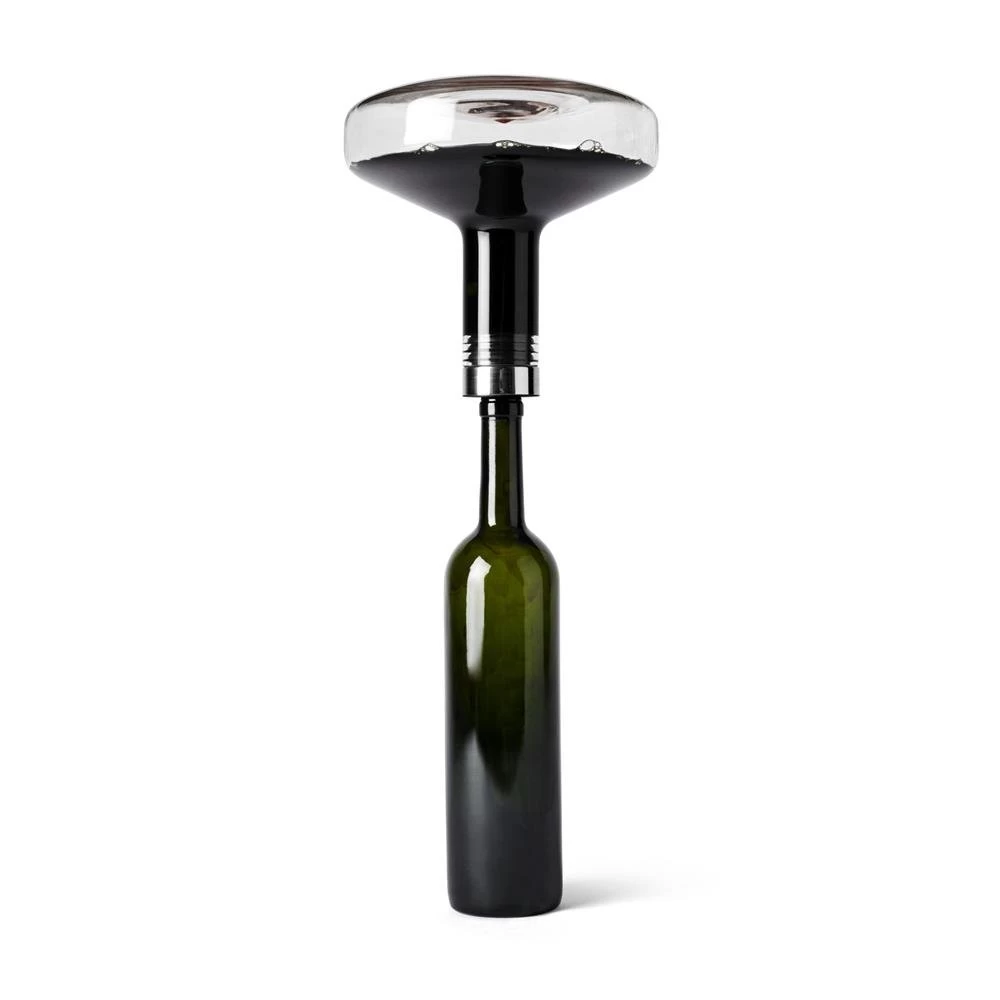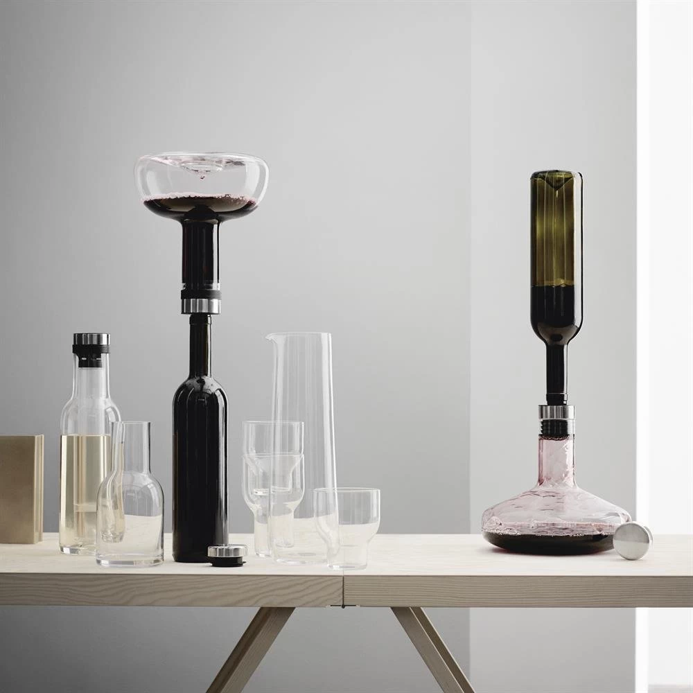 On décante le vin afin que air et oxygène entrent en contact et que l’arôme soit révélé. Les vins jeunes encore anguleux, notamment, peuvent gagner en arôme grâce à ce processus. Avec la carafe à décanter le vin Deluxe de Menu, décanter le vin est facile, rapide et sensationnel. Placez le goulot de la bouteille dans la carafe, tournez et attendez jusqu’à ce que le vin se soit écoulé le long des parois et qu’il occupe ainsi la surface la plus grande qui soit. Si vous souhaitez toutefois servir le vin depuis la bouteille, répétez simplement l’opération.